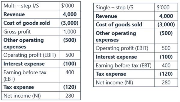 同学你好,就是single step下是没有gross profit的,而multi step下是有gross profit的
