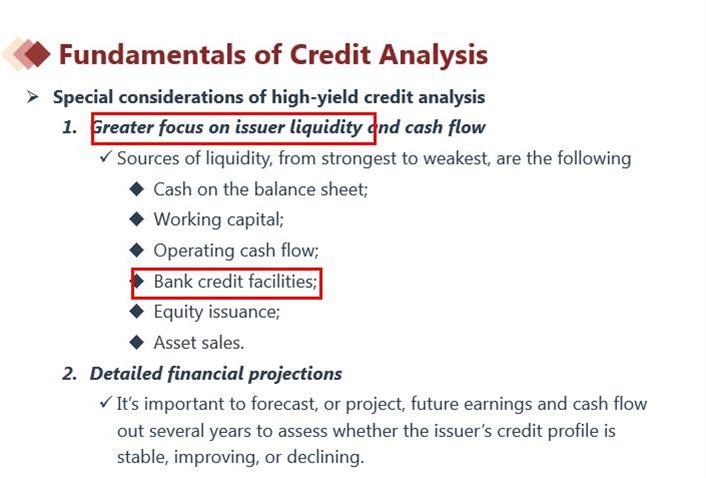 这道题目问的是与高收益信用分析相比,投资级别分析更可能依赖于: