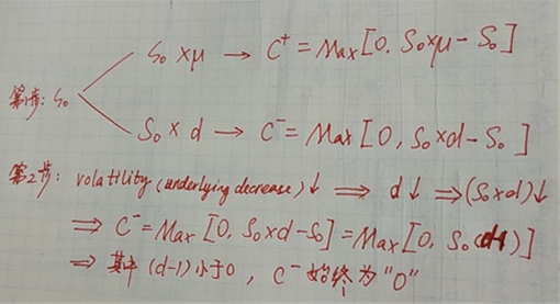 如果标的资产的波动率下降,u和d都变小,波动率往往是人为设定的,不因为上涨的概率和下跌的概率改变而改变,并且uxd=1,