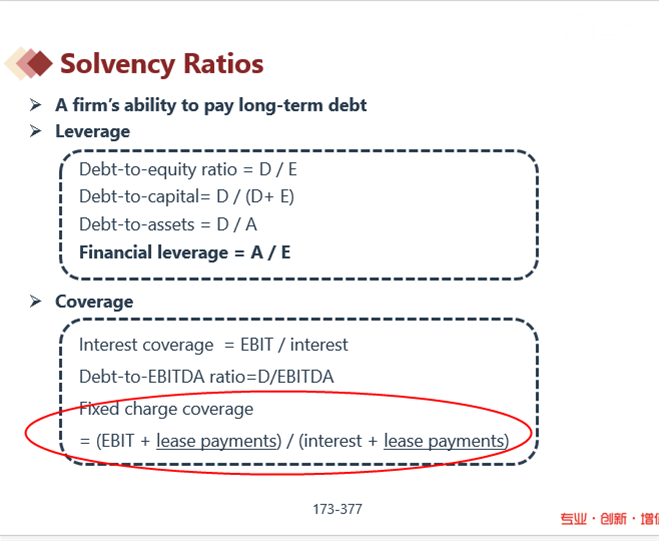 偿债比率里只讲了Financial leverage 和 Interest coverage 啊。视频和课件里都没有讲Fixed charge coverage.
