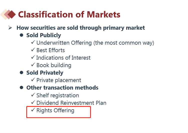 rights offering这种方式比较特殊,我们把它归类在其他的发行方式中,不属于private placement哦。