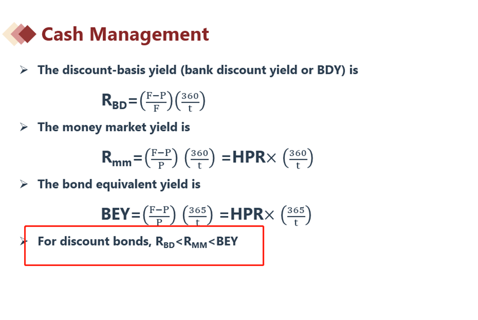 老师,老师解析时说的DBY<MMY<BEY可以作为结论记住,它是适合折价/平价/溢价债券计算收益率的所有情形吗?谢谢!