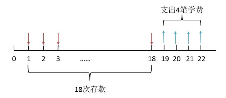 在18年年末,账户里不用有8万元,只需74465元,因为这个钱依旧会每年按5%进行复利滚存的,只需要保证在第19年/20年/21年/22年年末刚好能支出2万元即可哦