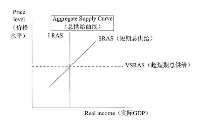 在非常短期内,企业可以增加或减少产出而不改变价格,因此VSRAS是具有完全弹性的。经过稍长的一段时期,某些成本因素会从不变转为可变,因此价格水平也会发生相应的变化,因此供给曲线从VSRAS转变为SRAS。