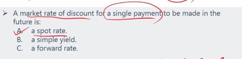 spot rate的定义:a yield curve for single payments in the future。也就是题干