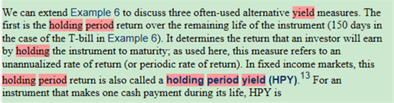 同学你好,Effective annual rate的另一个说法就是effective annual yield,Holding period rate的另一个说法就是Holding period yield,一般EAR和HPR较为常用