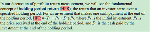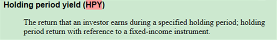 持有期回报(HPR)计算公式涉及持有期股票或债券价值与起初价值,而持有期收益率(HPY)涉及持有期回报(与1做差得到)