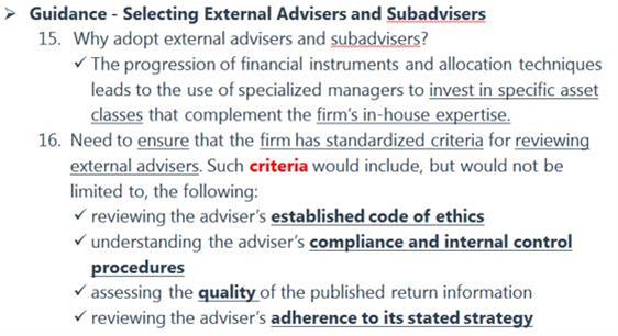 这道题就是问在选择external advisers and subadvisers,要满足哪些条件?A和C在题干中都提到了,只有B没有提到。B也是应该满足的条件。见下图