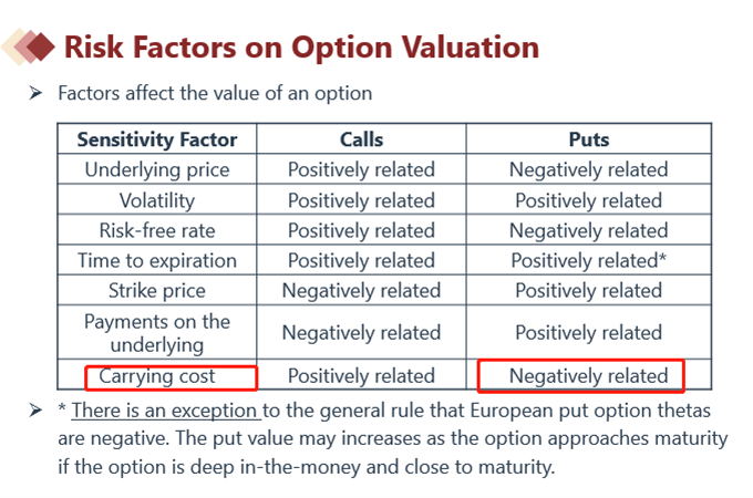 Carrying coat reduce the value of European put option怎么理解?