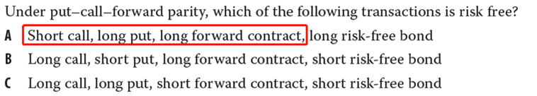 老师,不是c + k = p+ s吗?怎么解析里两边都有long risk free bond? 还有那个long forward contract不在公式里面吖?有点晕