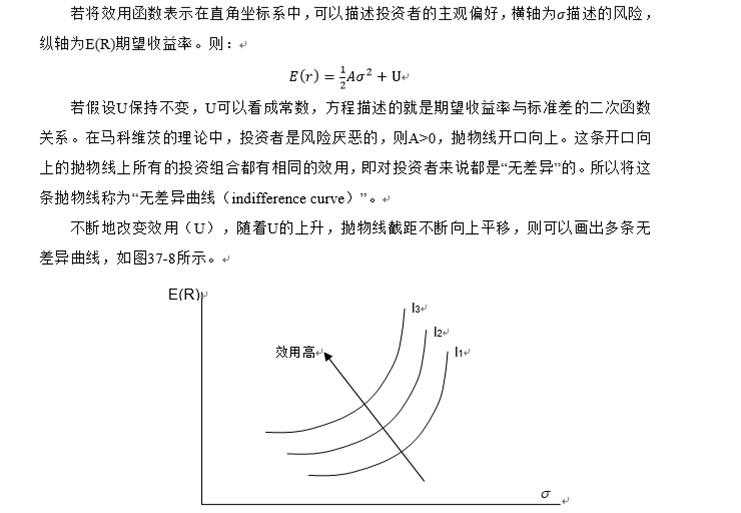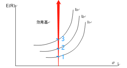 意味着当一个投资者承担相同的风险时,对应的预期收益率(交点123对应的收益率)是不同的,此时对应的效用U是不同的。
