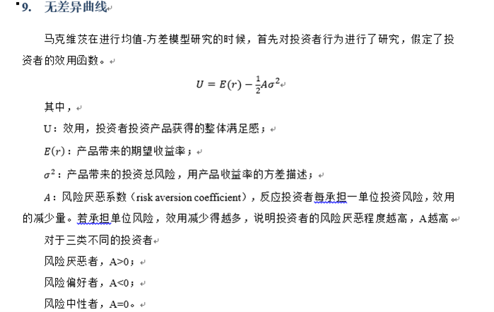 老师您好,能不能再解释下indifference curve这个概念,没能理解为什么对于一个投资者其indifference curve会有那么多条?然后indifference curve plots combinations of risk and expected return among which an investor is indifferent这句话怎么理解呀?