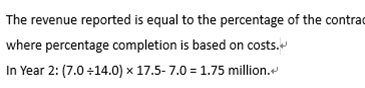 计算百分比的时候,成本应该对应成本,而不是revenue,所以是当年发生的成本7 除以 总成本14,这样算出来的才是完工百分比。