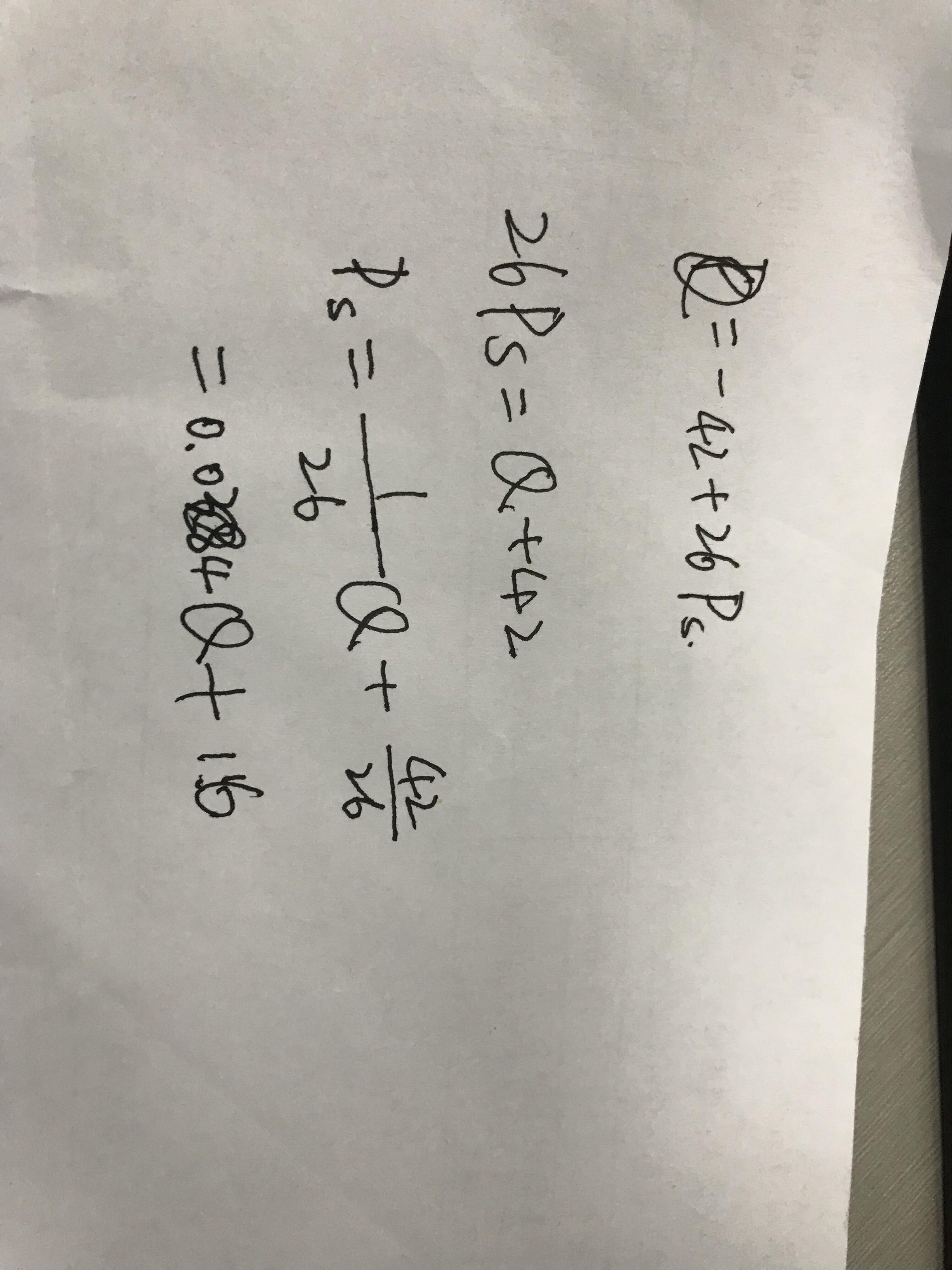 老师 你好,请问最后一步的反函数 我求不出来,不明白如何得出Ps=1.6+0.04Q