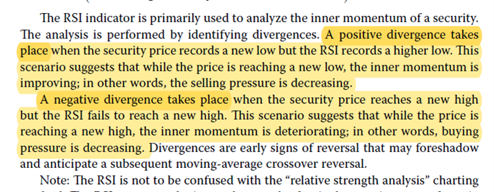 【2】A negative divergence takes place when the security price reaches a new high but the momentum indicator fails to reach a new high.