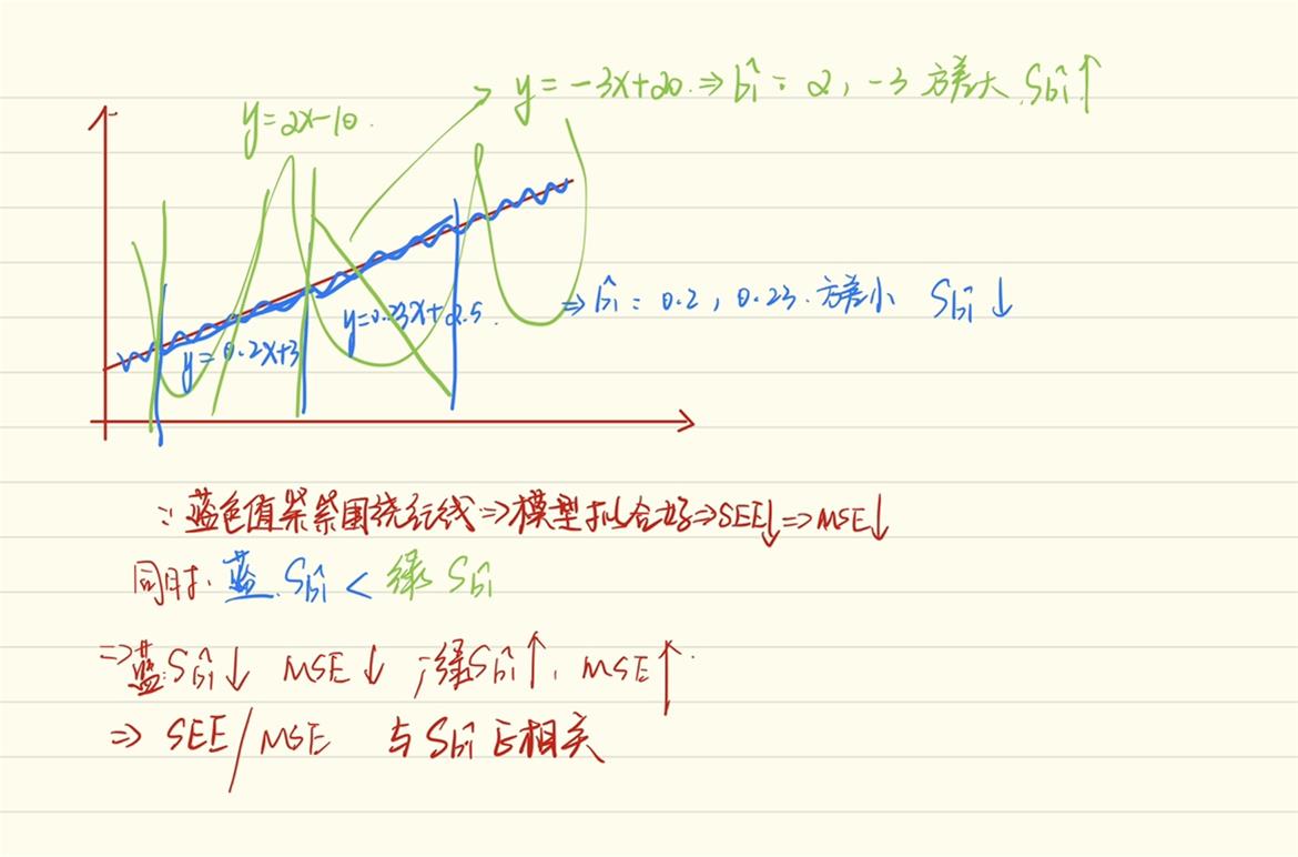 为什么b1的标准误越小,SEE越低?可以看一下下面的这张图。