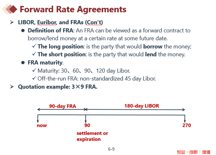 3.FRA是一份远期合约,标的资产是远期利率(例如Libor),如附图,0~90是合约期,90~270是执行期。