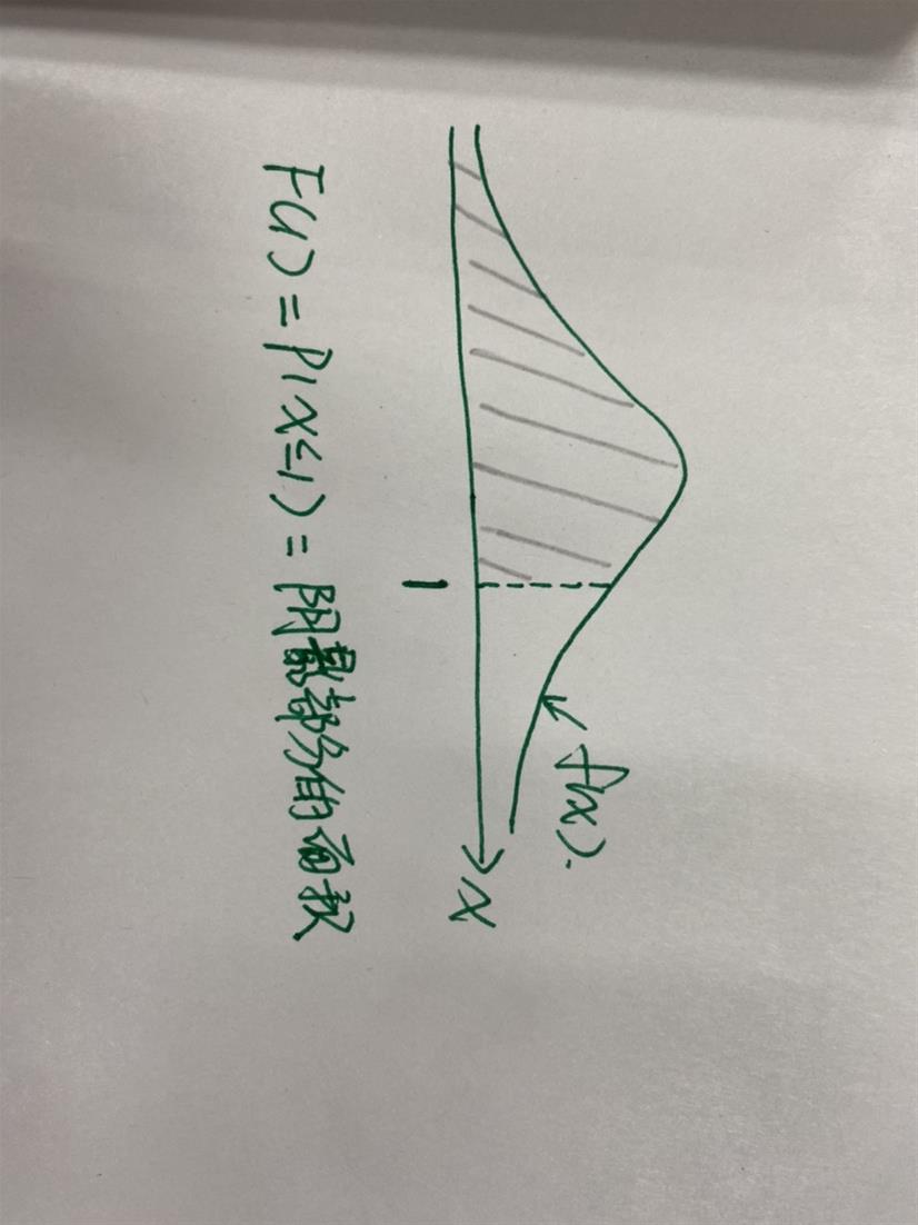 F(x),累积分布函数,指的是一个随机变量小于等于某个特定值x的概率F(z)= P(X≤z),如果z取1的话,画在图中就是下图