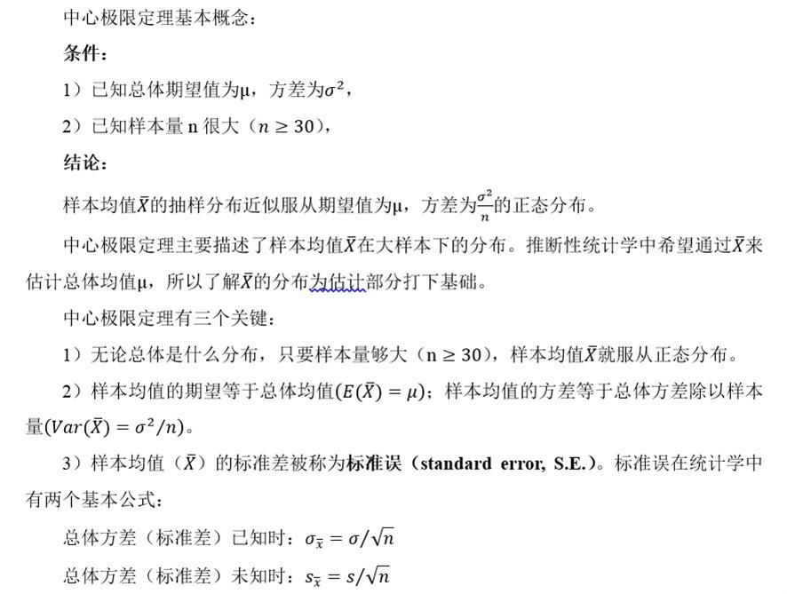 2)假设此时总体不服从正态分布,对于小样本此时是无法估计的;只有在大样本的情况下才可以估计,此时根据中心极限定理(总体的均值和方差已知,样本数量大于30),对应可得到的结论是:样本均值的抽样分布是近似服从正态分布的,因此可直接使用z分布