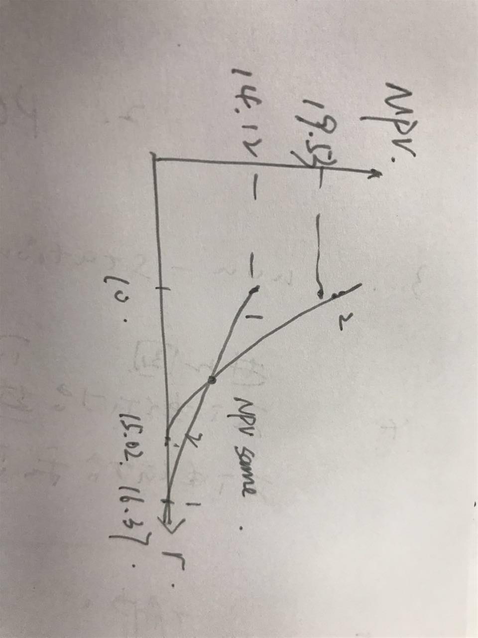 同学你好,这题考察的是NPV profile,可通过画图来解决(如下图)。