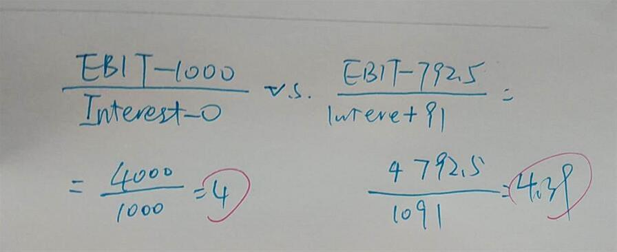 举例带入的数字EBIT(5000)和interest(1000)是随便编的,写的有点过程有点长,帮助解答你的问题,请参考PPT讲义来记结论,考试没有太多时间来推导的