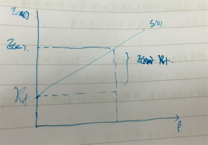 同学你好,仔细看了一下题目,应该是选B的,之前也掉进坑里了,可分散的风险是可以免费分散化的,比如说通过组合,SML定价的就是相比于无风险资产,市场多的的风险有多少收益,再考虑资产对市场的敏感程度,那么影响斜率的就是风险补偿和β,你看一下下面这个图。对了,你写的那个CAPM公式也有问题,E(Rm)-Rf才对