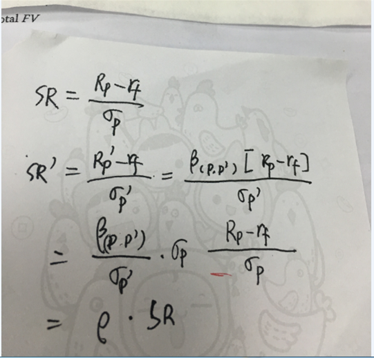 同学你好,我把这个推导过程给你看看,这个式子,是把原来的组合看做是market portfolio,那么这里要考虑进去β的因素
