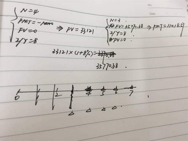 我做的为什么不对呢,学费不应该是先付年金吗?还有为什么后面是n=2呢?不应该是3吗?答案和老师上课讲的不一样?