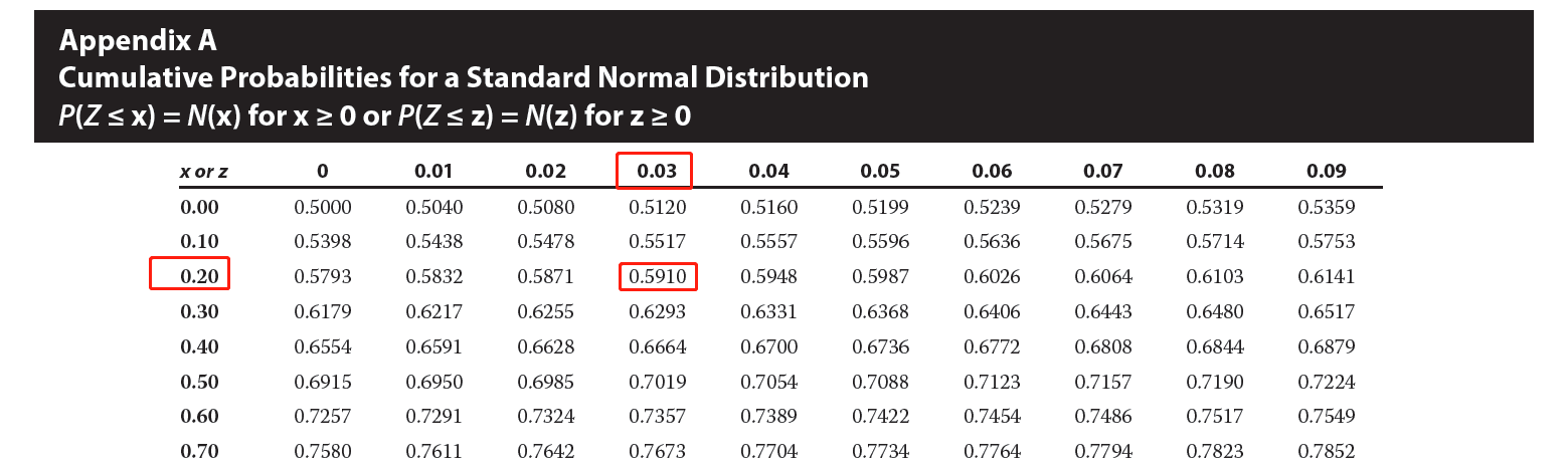 在题目solution中的(11%-8%)/14%=0.21,这个数值是关键值,查表如附图,找到第三行第三列(纵和横分别是0.2和0.01)的数值为0.5832=58.32%
