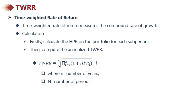 几何平均数的公式和TWRR的公式,一样,所以TWRR的本质是几何平均数
