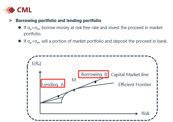 Rf无风险资产和EF任意一点的连线,是“无风险资产”和“EF上的风险资产”调整占比得到的,例如“80%资金投无风险资产”和“20%资金投EF上的风险资产”