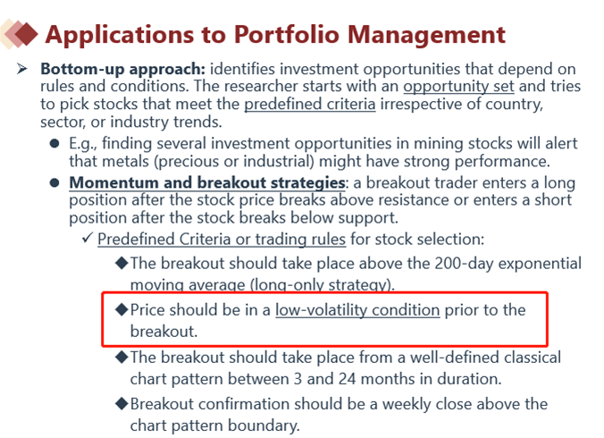 Securities that break out from low-volatility conditions are likely to experience high volatility。
