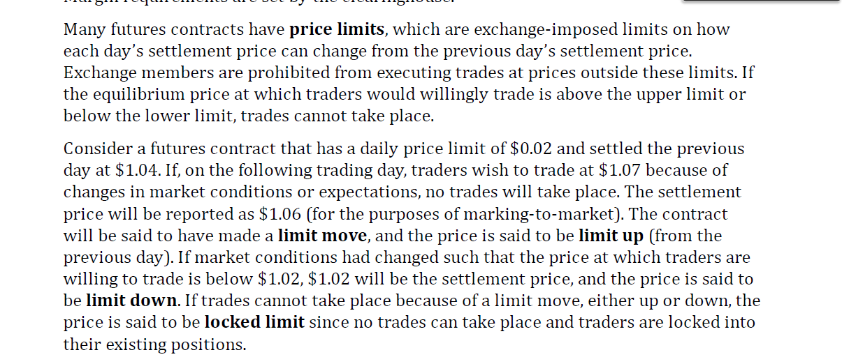 notes中提到futures有每天上涨和下跌的价格限制,当买卖双方同意的价格超过交易所限制的价格后,