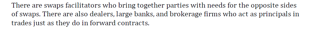 在notes第四本中,讲到swaps时候说: “there are also dealers, large banks, and brokerage firms who act as principals in trades just as they do in forward contracts." 这里的principal指的是哪一方?