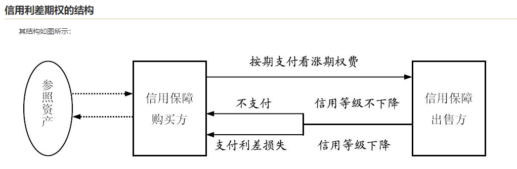credit spread option,信用利差期权分为看涨期权和看跌期权,允许到期时协议的买方可以单方面选择支付或不支付依据相应条款而事先约定的利差。