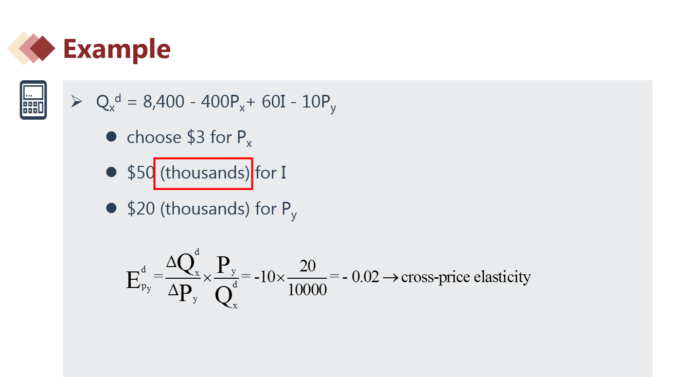 交叉弹性中的例题,是不是有问题,怎样都计算不出来QD是10000,Px=3,怎么可能Py=20thousands?Qd按理说代入公式算就好,但是怎么都算不出来,希望老师写细节,感谢。
