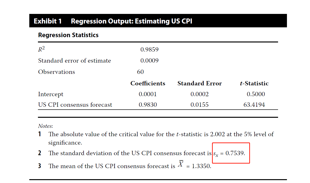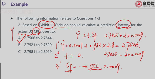 老师,33题,下面note里有个standard-deviation-of-forecast=0.7539吗,那为什么计算时候还用SEE代替Sf呢