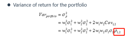 (以上两个可以从附图的公式中理解,只有相关系数发生变化“从1至-1”而其他条件不变的情况下,投资组合的方差会减小)