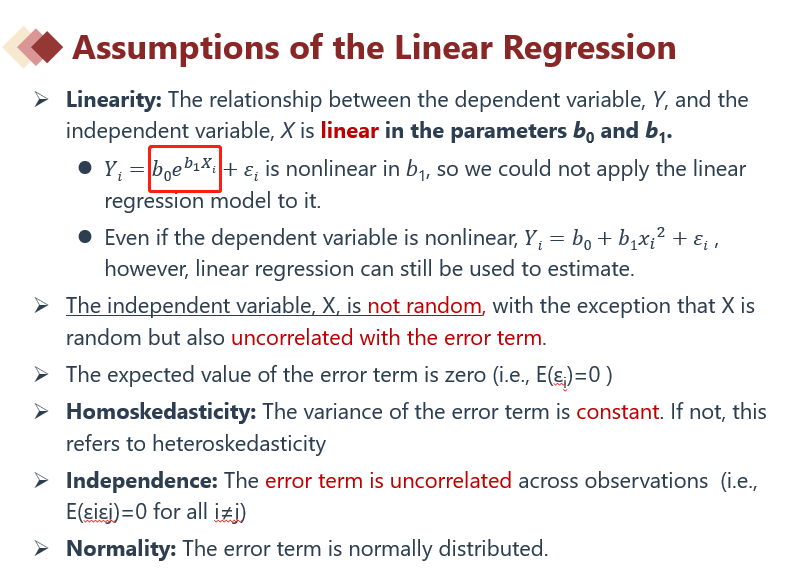 这一页linearity的例子第一个方程,b0、e、b1不是参数就是常数,为什么不是线性?
