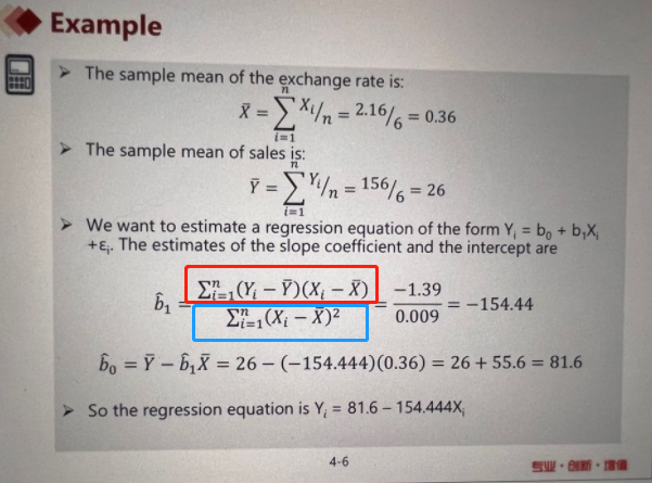 老师,请问求b1的公式问题,分母应该是x的方差,为何例题在解析的时候算出的0.009并没有除以n或者n-1