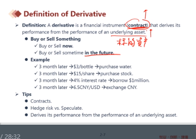 老师在截图的位置介绍了衍生品的基本概念,简单举例,不适合在截图位置引出期权这种比较难的合约