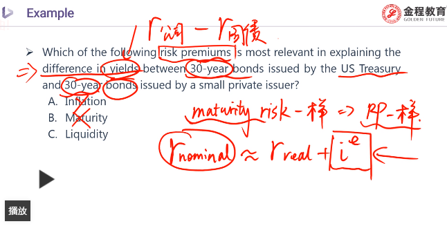 在题目中,分析过程是在相同的名义无风险收益率的基础上,考虑不同的风险溢价risk premium(截图讲义第二个公式)