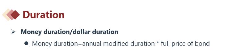 money duration=modified duration * full price of bond