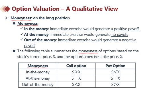 moneyness指的是价值状态,通过S和X的大小关系,确定期权处于“at the money”“out of the money”和“in the money”三种状态