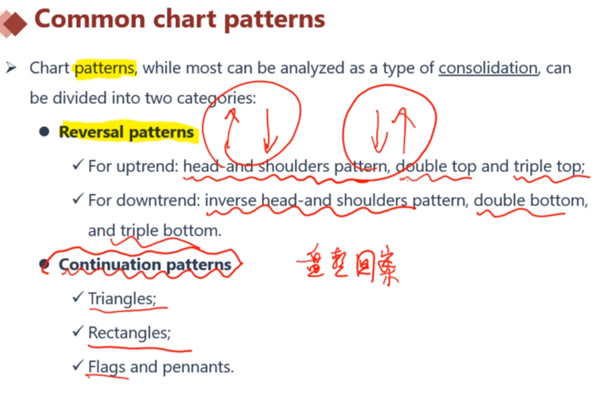 reversal pattern(反转)和continue pattern(持续)是两个不同趋势