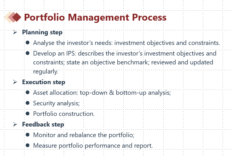 在组合管理科目第一个章节“Portfolio Management: An Overview”的知识点“Portfolio Management Process”