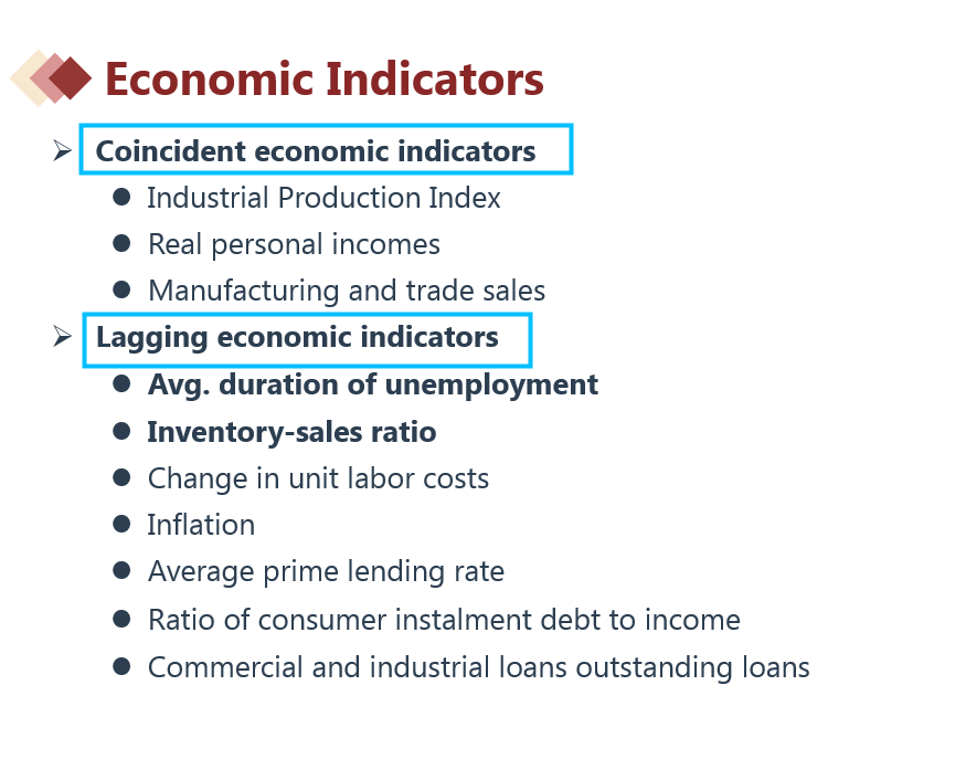 Coincident economic indicators:同步指标,有3个,它可用于判断经济当前所处的状态