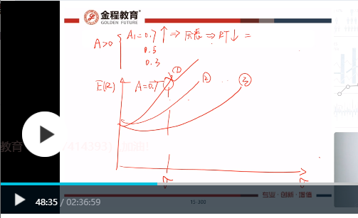 板书的意思是,如果风险厌恶程度越高,对于相同风险的产品,要求预期收益率更高。