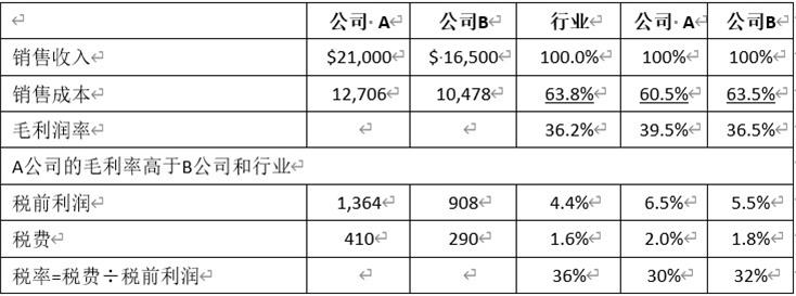 但是B选项说的是A和B两个公司的税率高于行业平均,说法是错误的哈