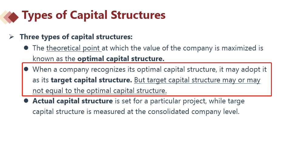 最优资本结构是一种理想化的最优状态,但是实际可能无法达到,当公司确认其最优资本结构时,可以将其作为目标资本结构。但目标资本结构可能等于也可能不等于最优资本结构。因此不能说他们是很接近的,有可能差别很大。